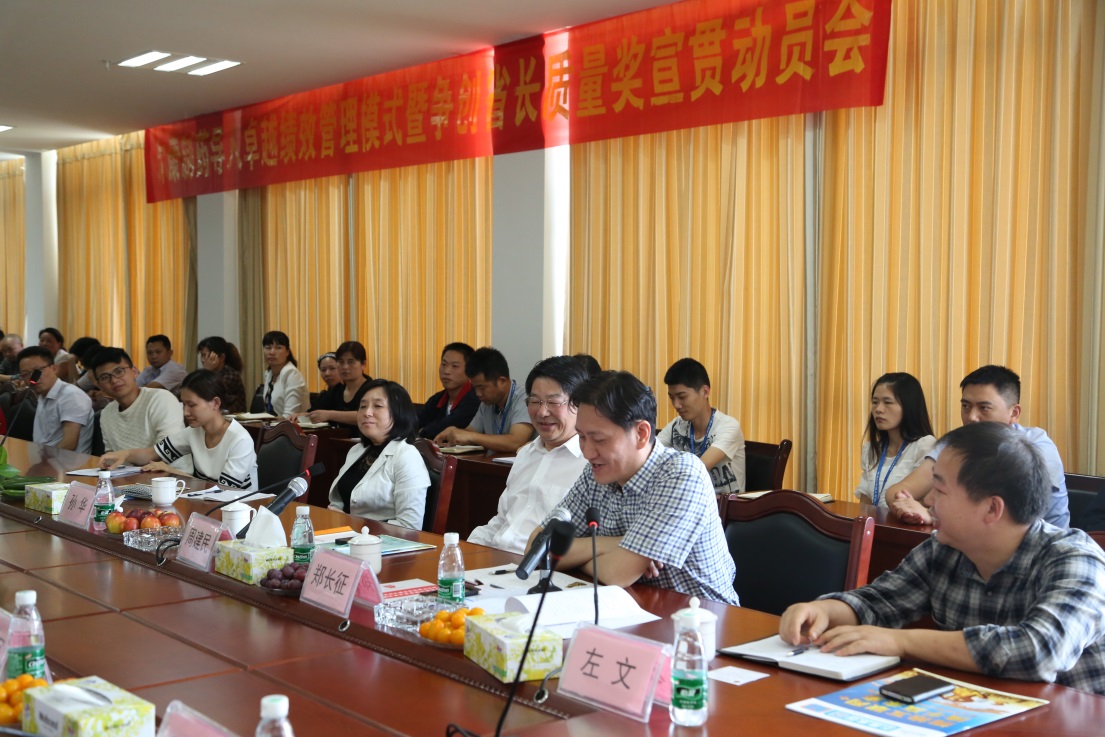 5月12日,完美体育(中国)体育官方网站导入卓越绩效模式暨争创湖南省省长质量奖宣贯动员大会在公司三楼会议室召开。湖南省质量技术评审中心高级顾问周建民、省质监局质量管理处副处长郑长征、省质量技术评审中心主任左文、省质量技术评审中心副主任孙华等领导出席会议并讲话。完美体育(中国)体育官方网站董事长帅放文和全体中层以上管理人员参加本次宣贯动员大会。