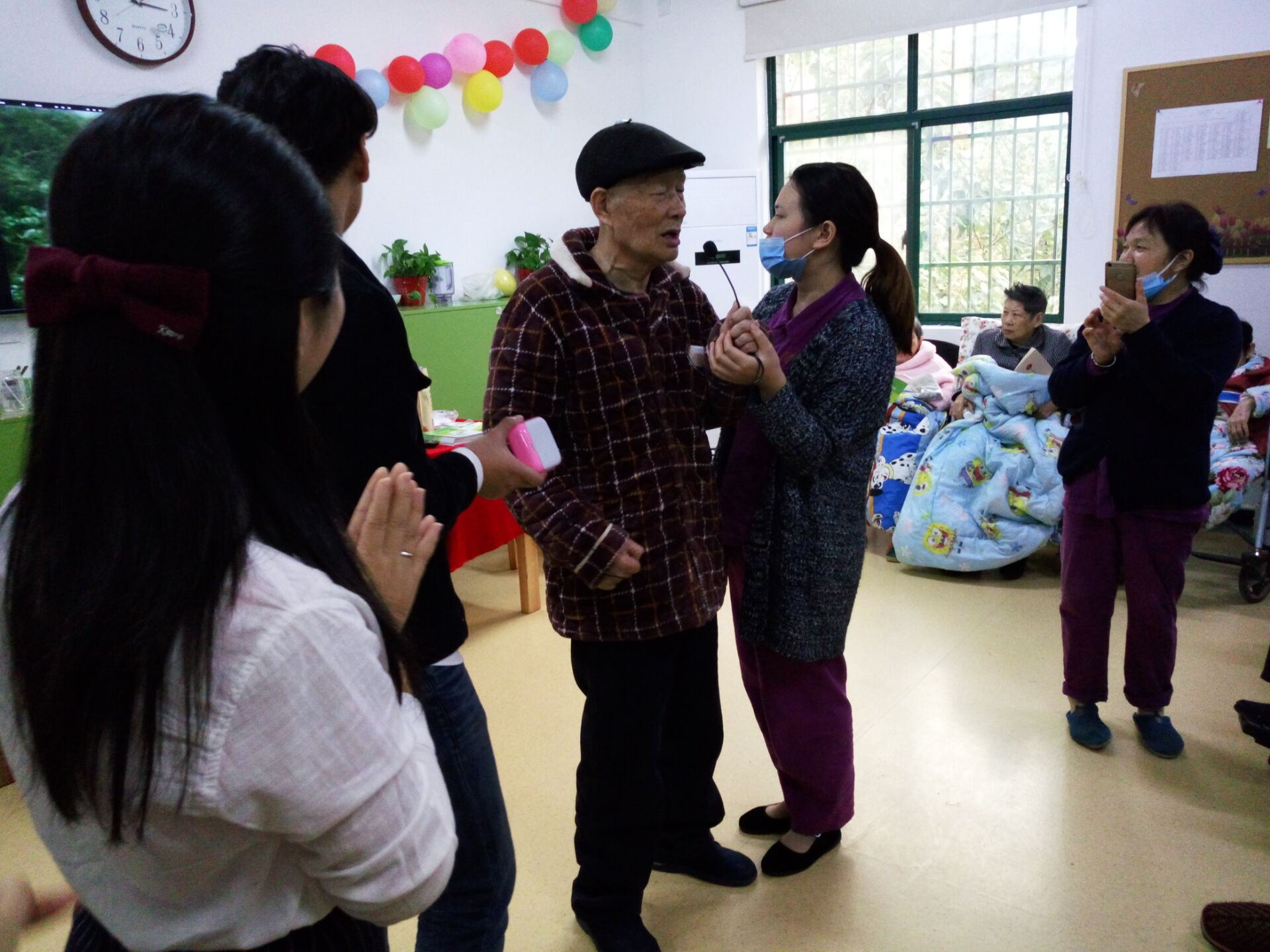 淀粉空囊小分队在老人们的热情欢迎下开始了当天的活动。