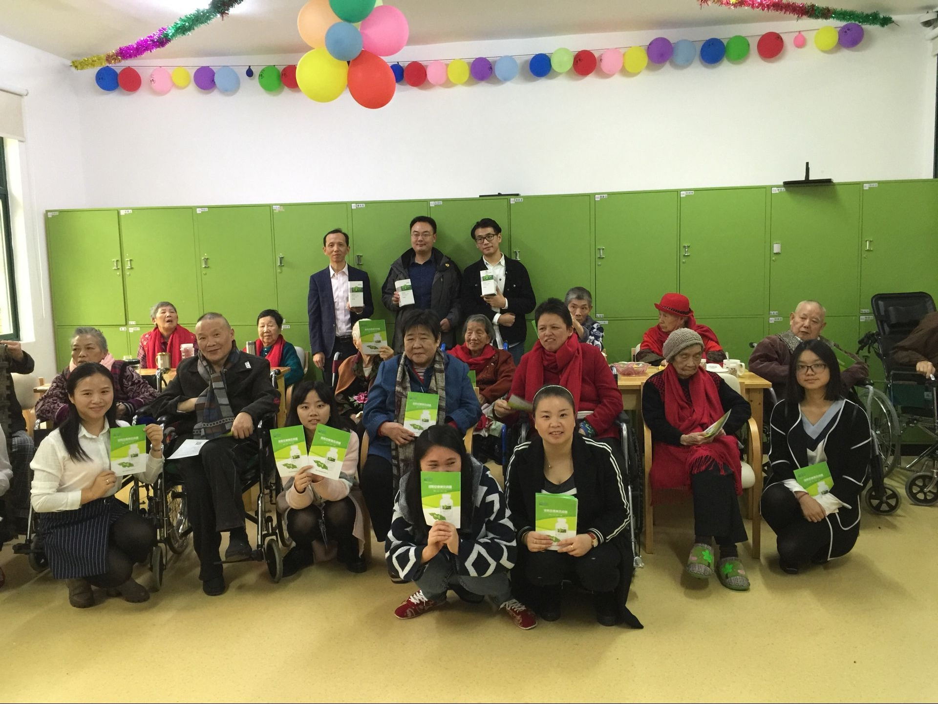 早上9点,淀粉空囊小分队一行人带着为老人们准备好的水果、养生产品和一些小礼品来到普亲,机构的彭站长及工作人员做了热情接待。在工作人员的带领下,小分队来到了活动中心,一进门,就看到一群高寿的老人已经井然有序地坐在那里,彭站长说,老人知道小分队今天要来看望他们,并为他们讲解养生知识,都非常开心,迫不及待。