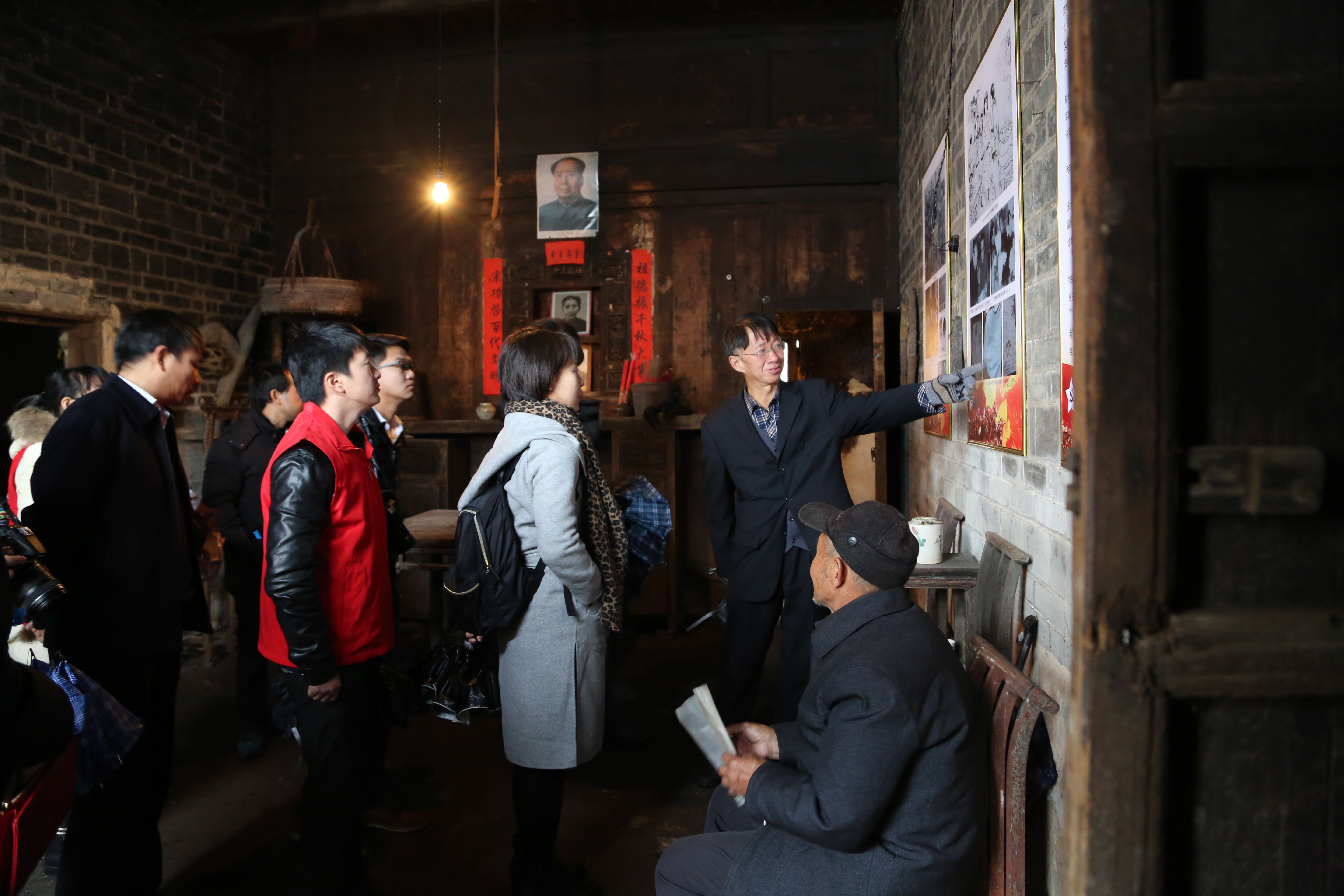 在郴州汝城县文明瑶族乡沙洲村徐解秀故居,84岁的徐解秀大儿子再一次向我们讲述了“半条被子”这段感人的故事。红军到达沙洲村宿营修整时,徐解秀夫妇将露宿在屋檐下的三个女红军战士请进家中。因家里穷,晚上她们四人挤在一张床上共用一条被子和蓑衣,红军临行时,将自己仅有的棉被剪开赠予了自己的恩人。在聆听的同时,大家肃然起敬,是真诚、同甘苦、共命运的鱼水情深深地打动了在场的每一位人,是革命先辈用他们艰辛、生命换来了我们今天的幸福生活。