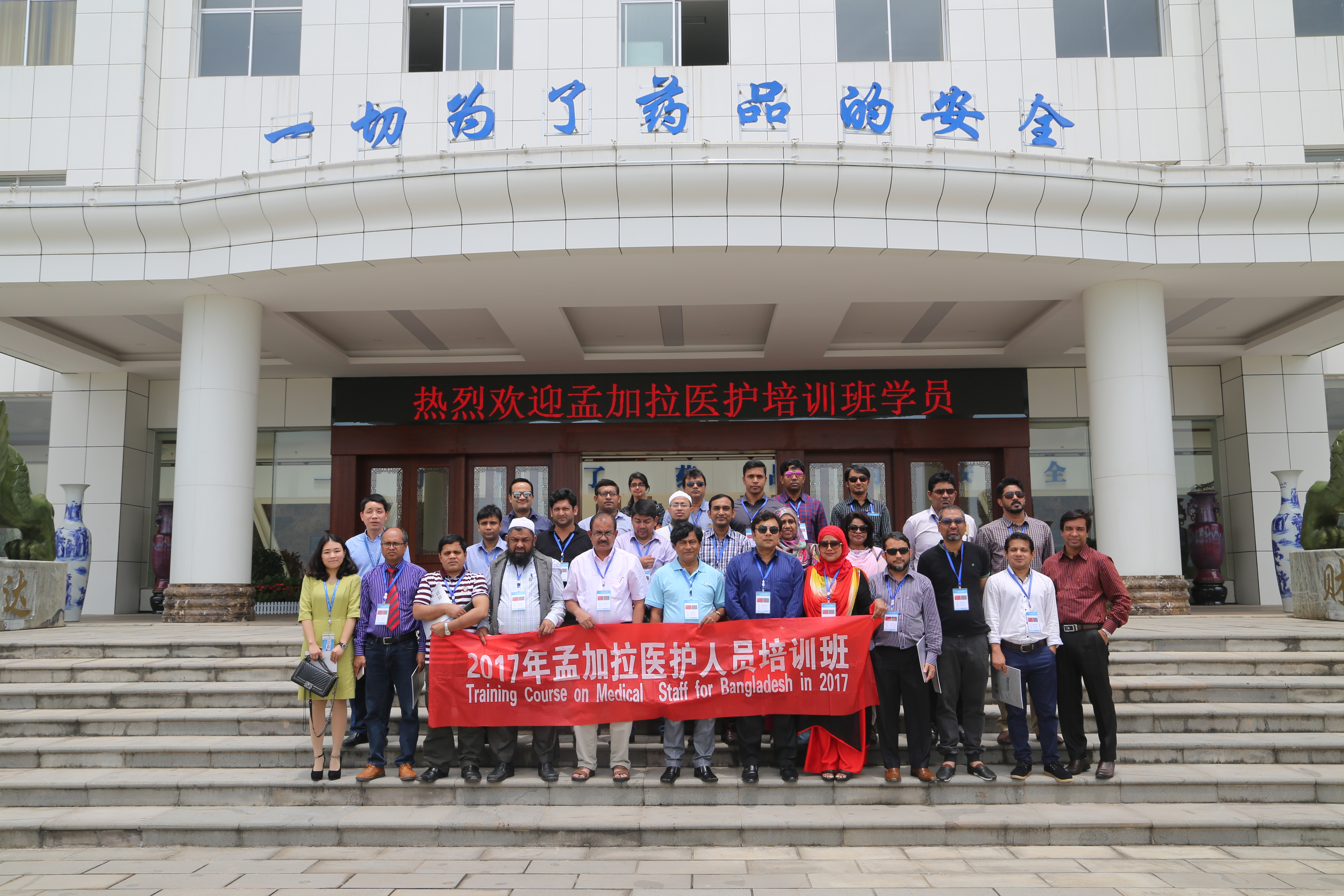 孟加拉国医护人员培训班学员在完美体育(中国)体育官方网站大楼前合影