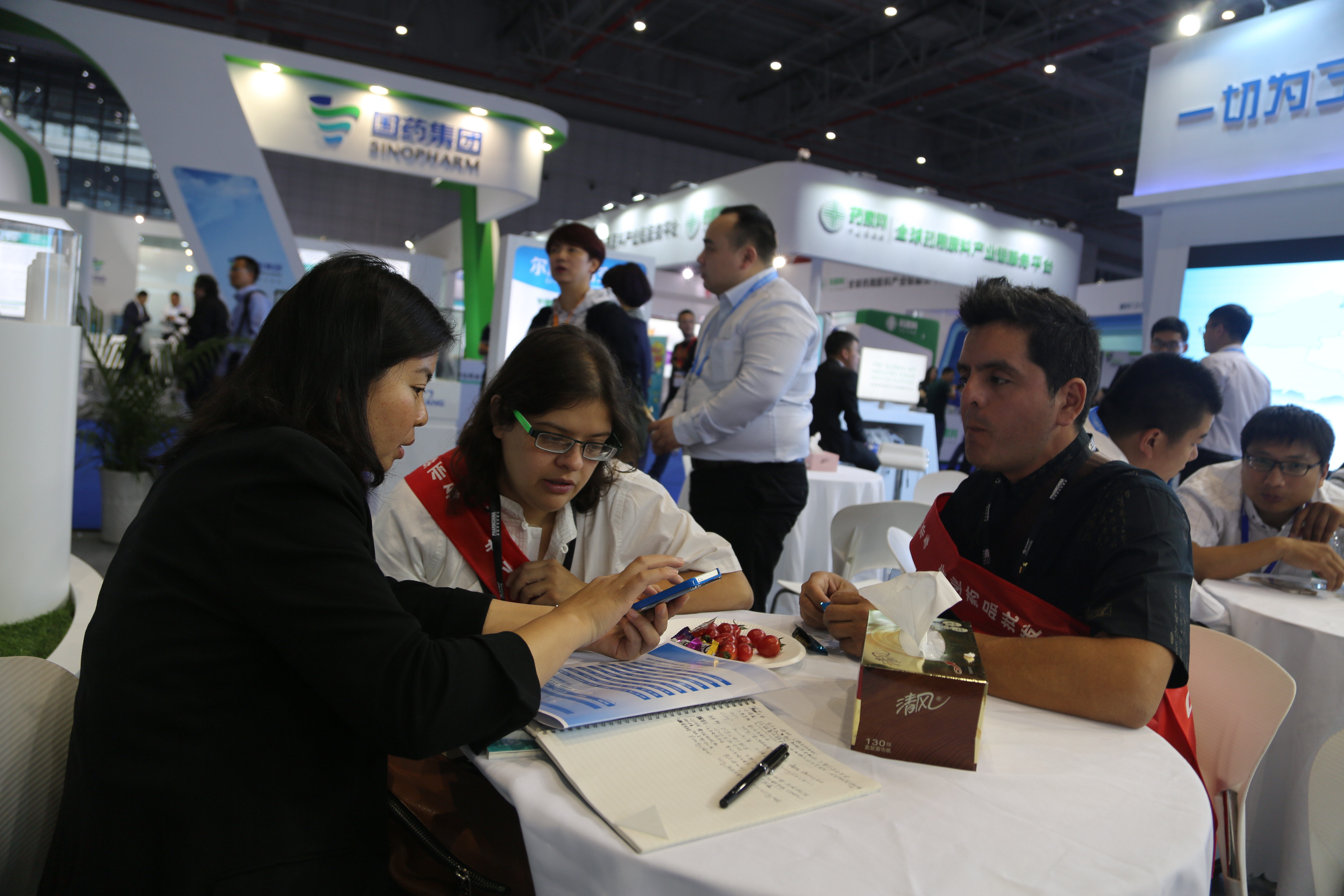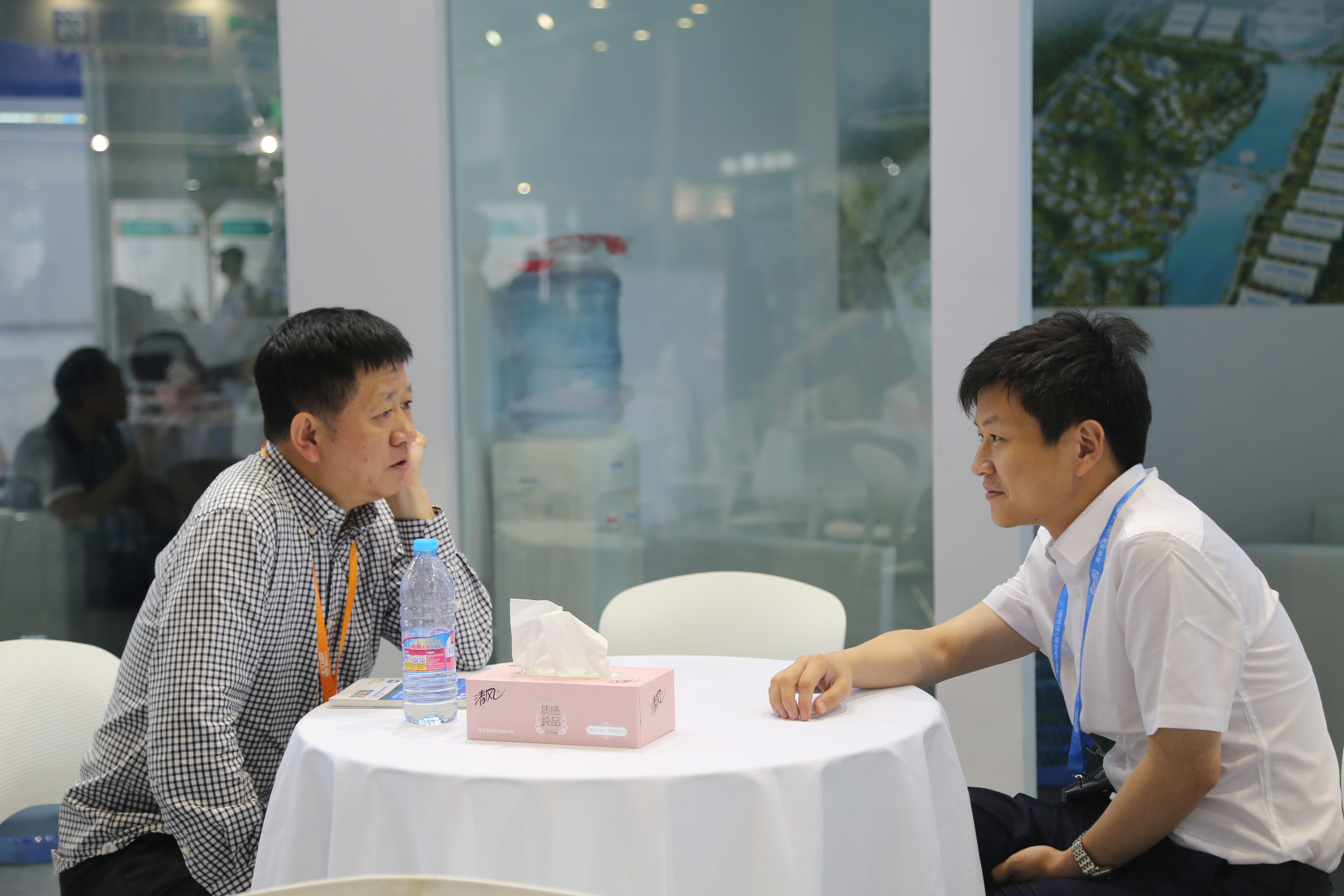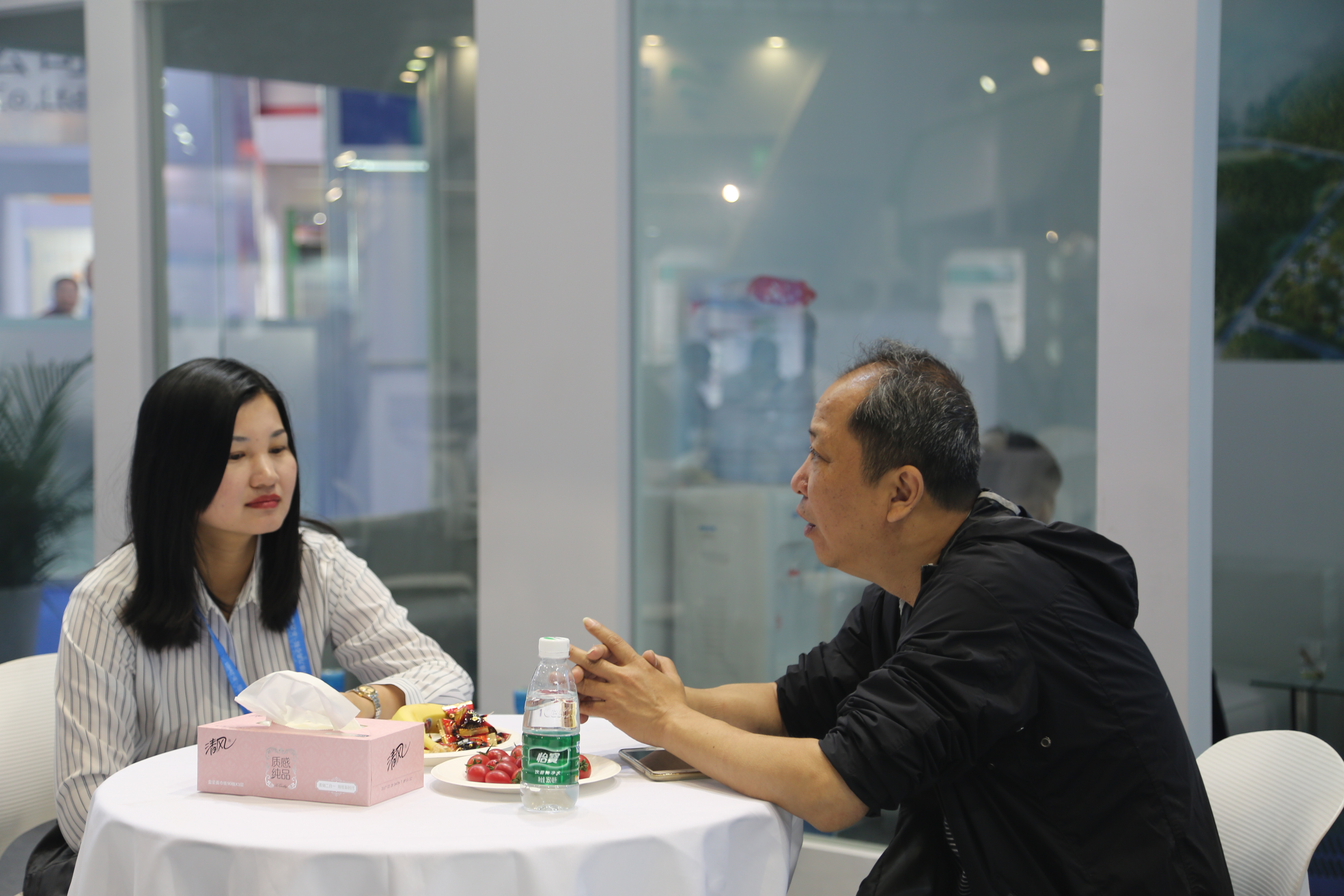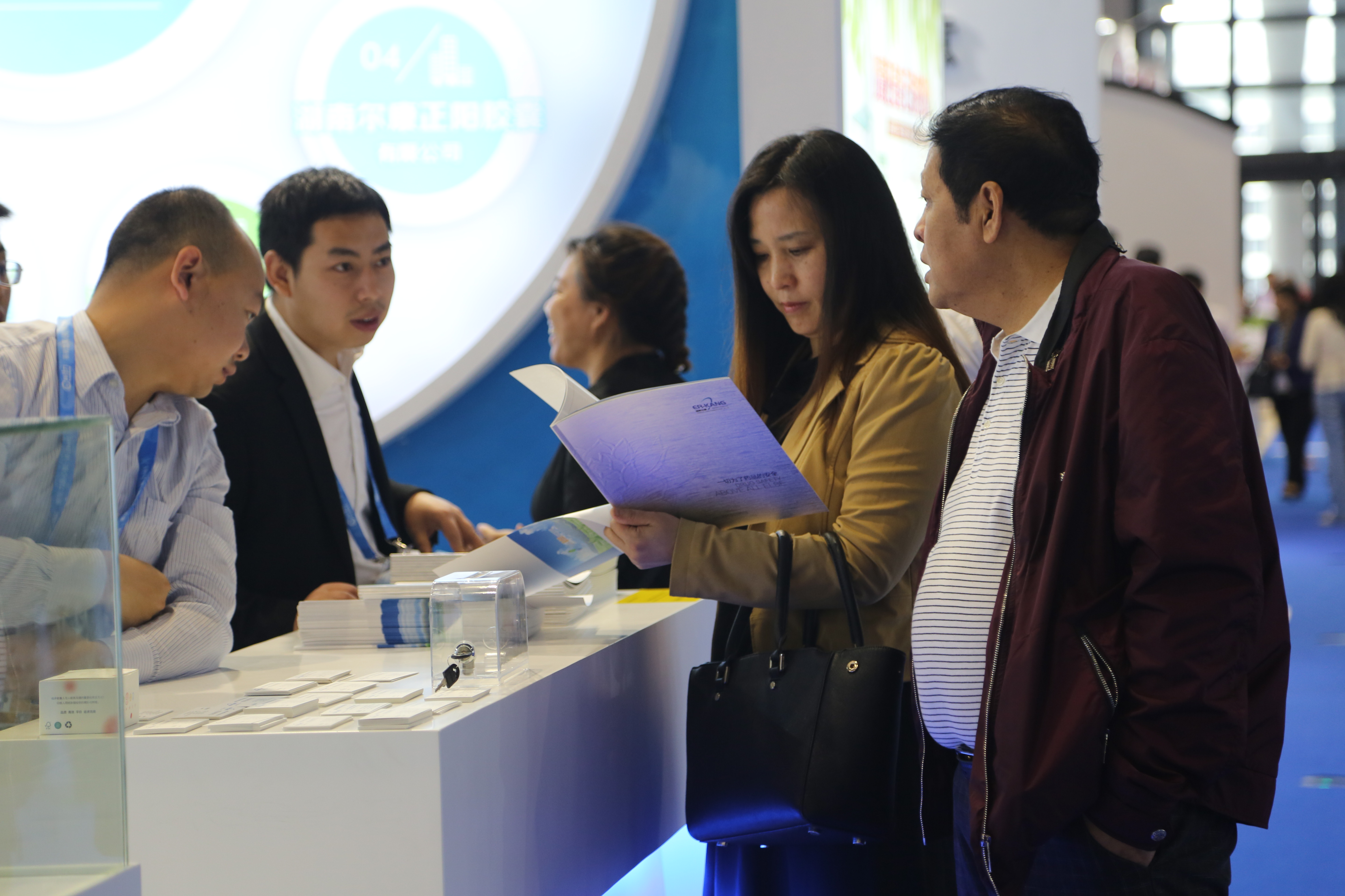 一进入上海国家会展中心大门,完美体育(中国)体育官方网站蓝白简约风格的展厅就映入眼帘,百余平方米的展厅内整齐摆放着近三十套桌椅,展台上井然有序的陈列着参展产品,四十余名工作人员精神焕发,用心接待每一位客户,努力让每一位客户满意。
