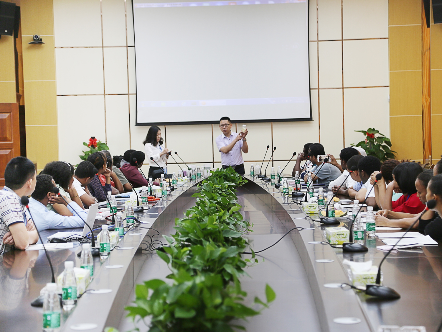 向埃塞俄比亚学员介绍淀粉胶囊生产线