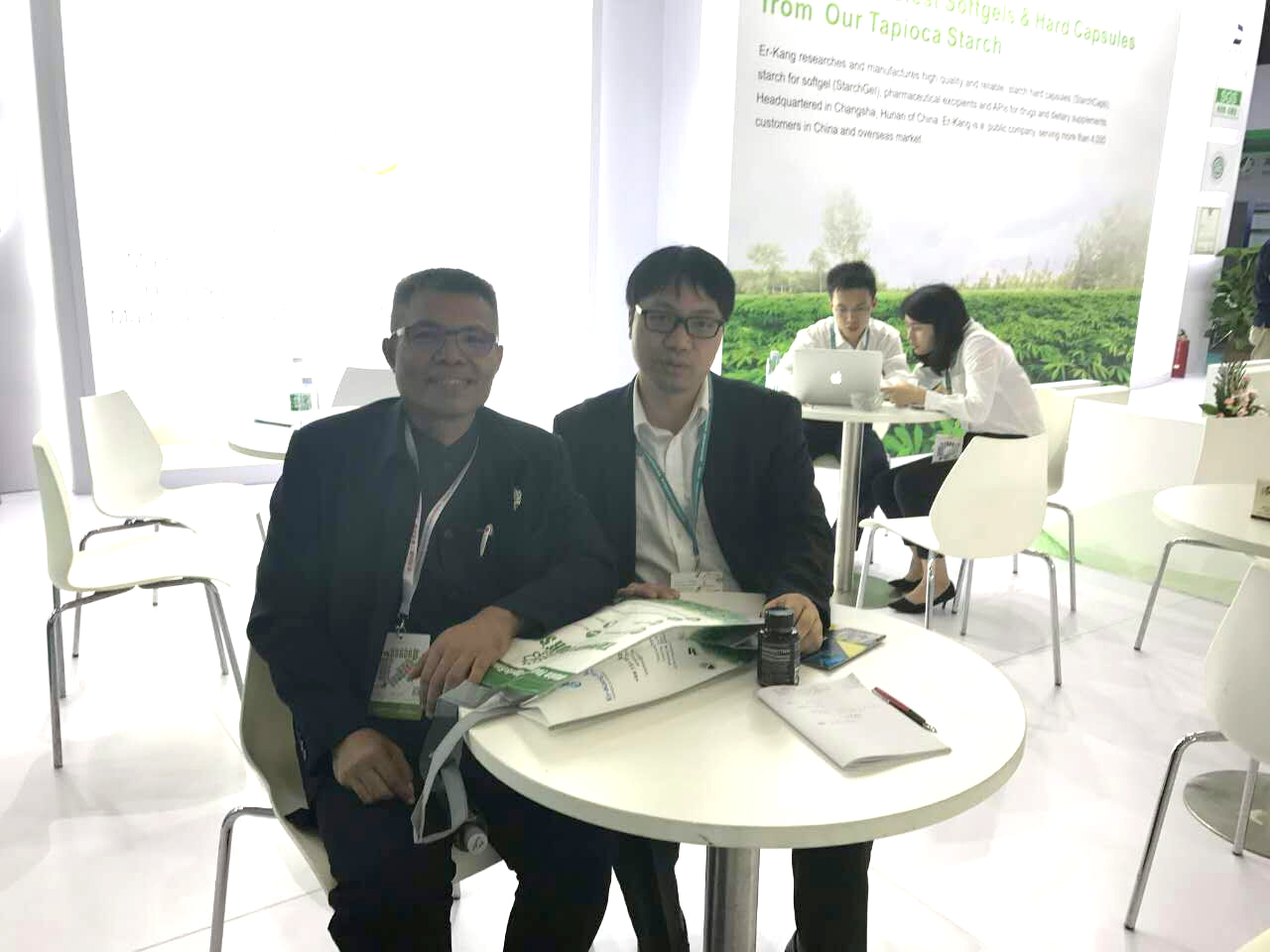 在展会上,淀粉胶囊因其天然健康的优势,以及高科技水准,在展会上一亮相,就吸引了大批客户前来展台咨询。“淀粉胶囊真的是纯植物的吗?”“淀粉胶囊服用了有没有副作用?”“和其它胶囊相比,淀粉胶囊有什么优势?”······面对接踵而来的问题,工作人员都一一耐心地为客户解答。