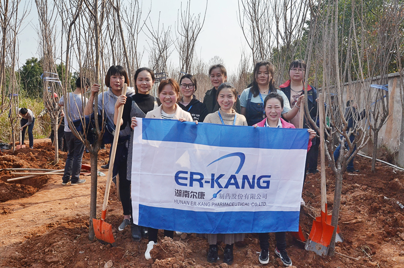 “今天种了好几棵树,胳膊都有点酸了,但感觉很有意义,明年的这个时候樱花应该开了,以后会经常过来看看。”来自公司成品药基地的曹玉开心地讲到。