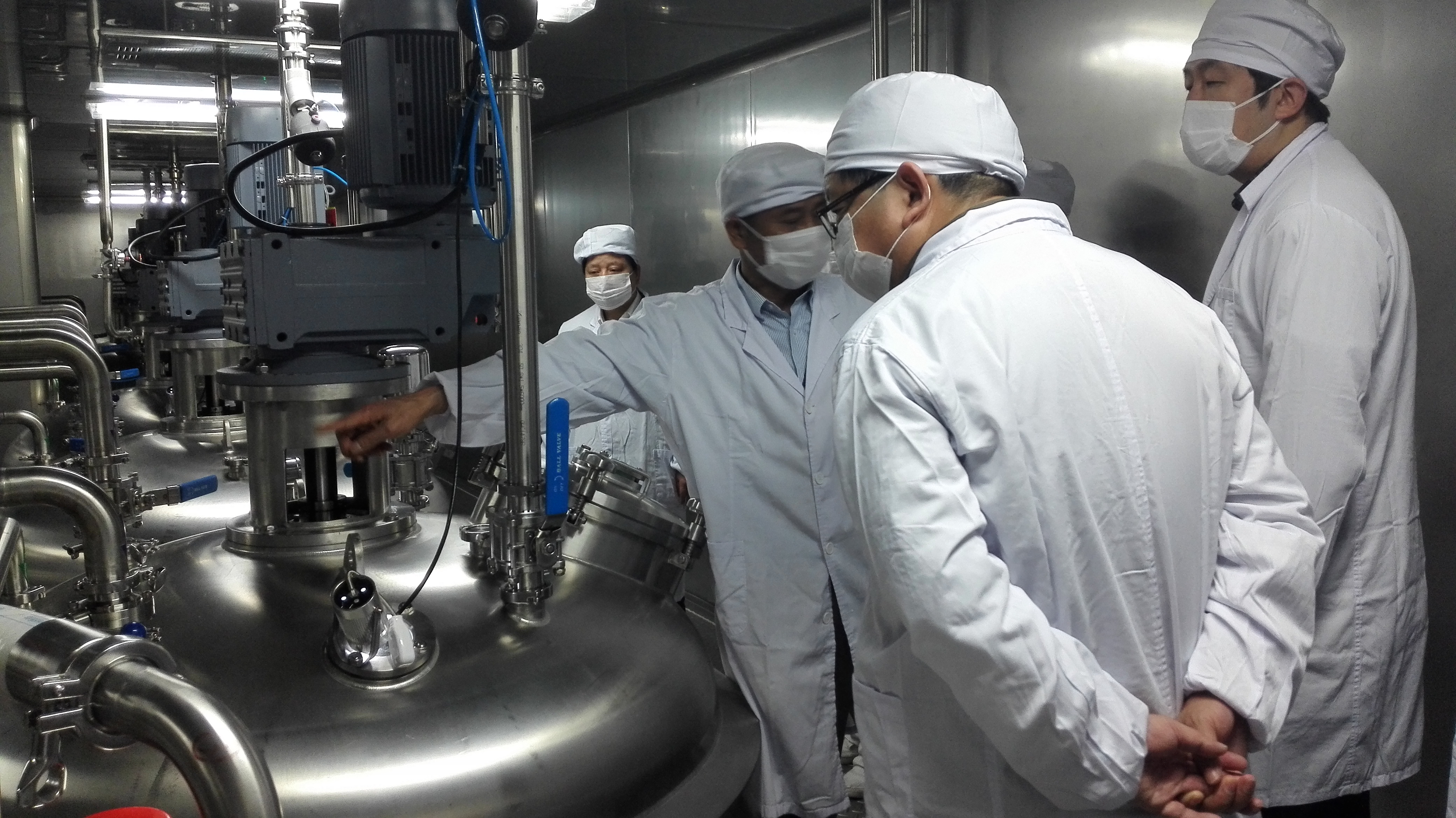 在帅放文董事长的陪同下,来访的相关领导参观了淀粉胶囊生产车间,详细了解了淀粉胶囊生产的工艺流程及设备设施,并对淀粉胶囊生产线引入机器人,进行设备升级提出了相关思路,以促进淀粉胶囊生产实现智能化。