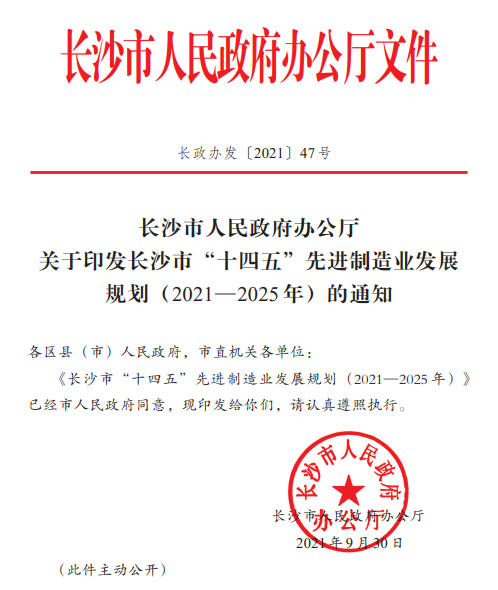 长沙“十四五”先进制造业发展规划鼓励完美体育(中国)体育官方网站等原辅料企业发展