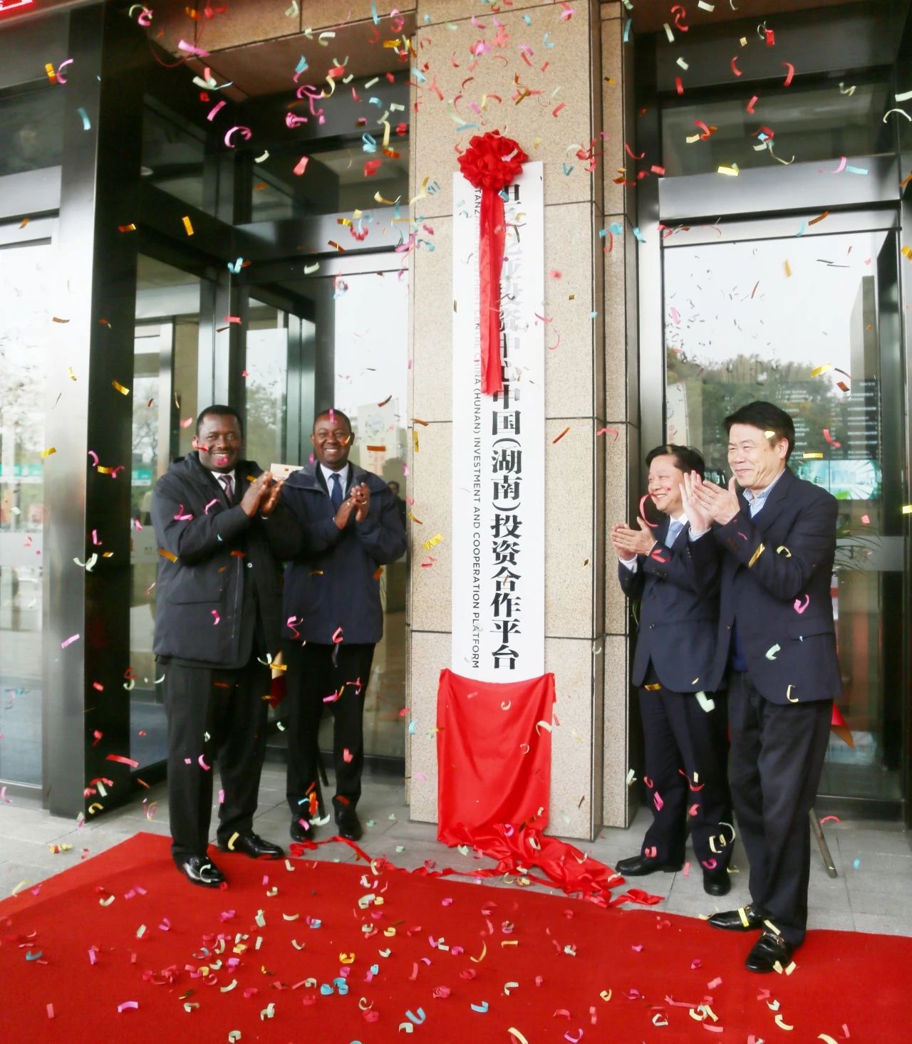 下午14时,坦桑尼亚投资中心中国(湖南)投资合作平台揭牌仪式在红橡国际广场一楼举行。
